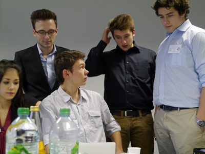 … vom 12. bis zum 16. Januar schlüpften 5 Schülerinnen und 14 Schüler des 11. Jahrgangs für eine Woche in die Rollen von Vorständen der Aktiengesellschaften Pulse AG, KlangZ AG und SoundWave AG. Am Montag übernahmen sie die Leitung dieser drei Aktiengesellschaften. In Konkurrenz zueinander arbeiteten sie in den folgenden Tagen hart am wirtschaftlichen Erfolg ihrer Unternehmen. Jeder Tag entspricht in diesem Wirtschaftsplanspiel einem vollen Geschäftsjahr.